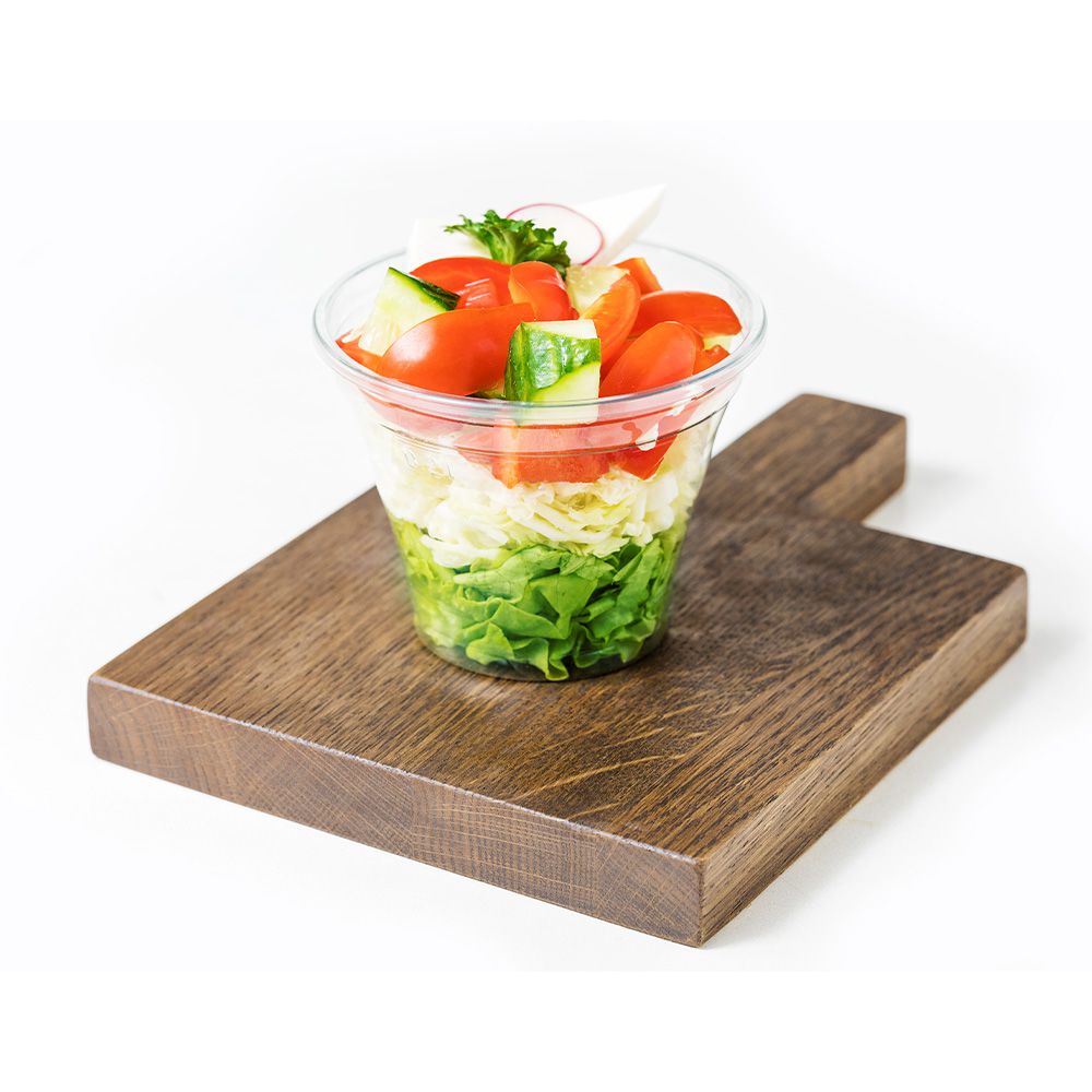 ähnlich einem Kinder- oder Seniorenteller, kleine Portion, fettarm (Fett macht müde!), mit nährstoff- und vitaminreichen Inhalten